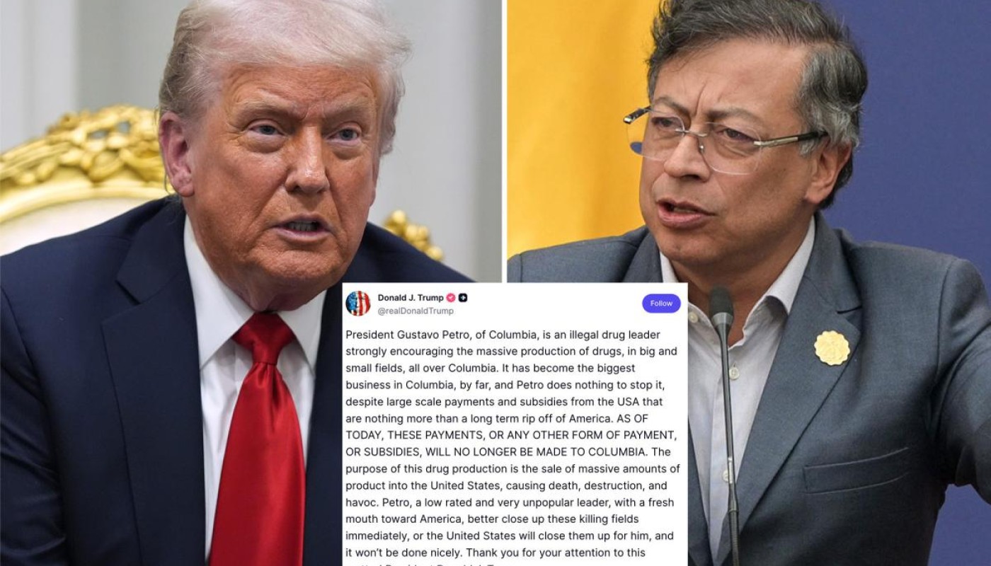 El presidente Trump acusó al presidente de Colombia, Gustavo Petro, de ser un “líder del narcotráfico ilegal” y anunció que su administración cortará todos los subsidios al país latinoamericano.