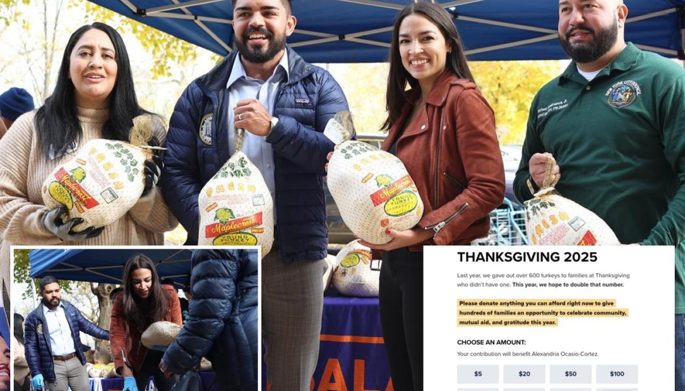 La representante Alexandria Ocasio-Cortez (demócrata por Nueva York), miembro del "Escuadrón", ávida de poder, ideó una nueva forma de disfrutar de la vida este Día de Acción de Gracias: vinculó su donación anual de pavos con su gigantesca campaña de reelección. Y los críticos están denunciando la injusticia.
