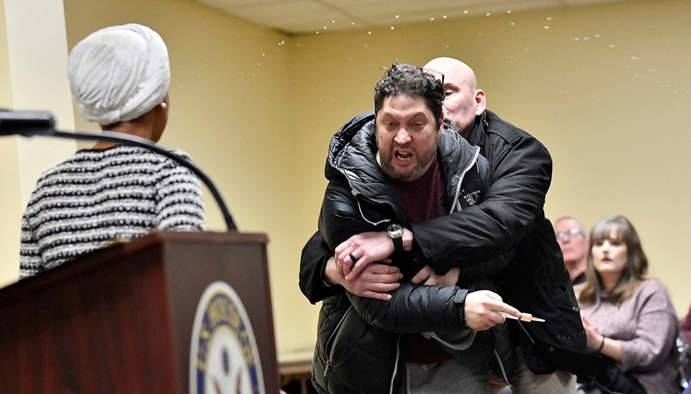 El evento comenzó sin mayores incidentes hasta que un hombre atacó a la congresista con un espray químico que despedía un olor desagradable, según personas cercanas. Quienes estaban cerca querían que Omar se fuera, pero Omar se negó y continuó.